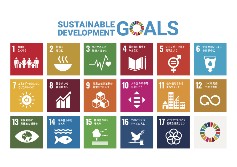 SDGs(エスディージーズ)は「持続可能な開発目標(Sustainable Development Goals)」の略称で、国連が掲げている2030年までの国際社会共通の17の目標を指します。日本においても政府や地方自治体、企業、教育機関、医療機関などの幅広い分野で積極的に取り組まれています。