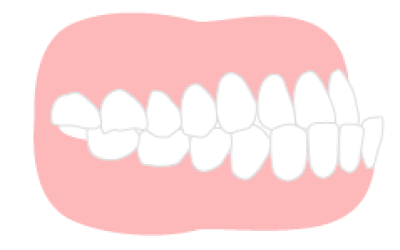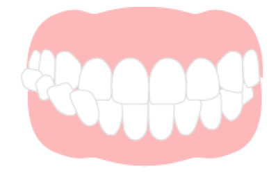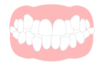 顎が狭く、歯が混雑している状態。フェイスラインへの影響は少ないですが、口を開けた時に目立ちます。