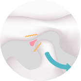顎関節症の症状の中で最も代表的かつ困る症状の1つがこの「顎の痛み」です。多くの場合、口を開けるときに顎の関節の周辺に痛みが出やすいです。時には、こめかみ・肩・首筋の筋肉に圧痛をおぼえることもあります。痛みが出やすいときは「大きく口を開けるとき」「固い物をかむ時」「朝起きて最初に口を開けるとき」が多いです。
