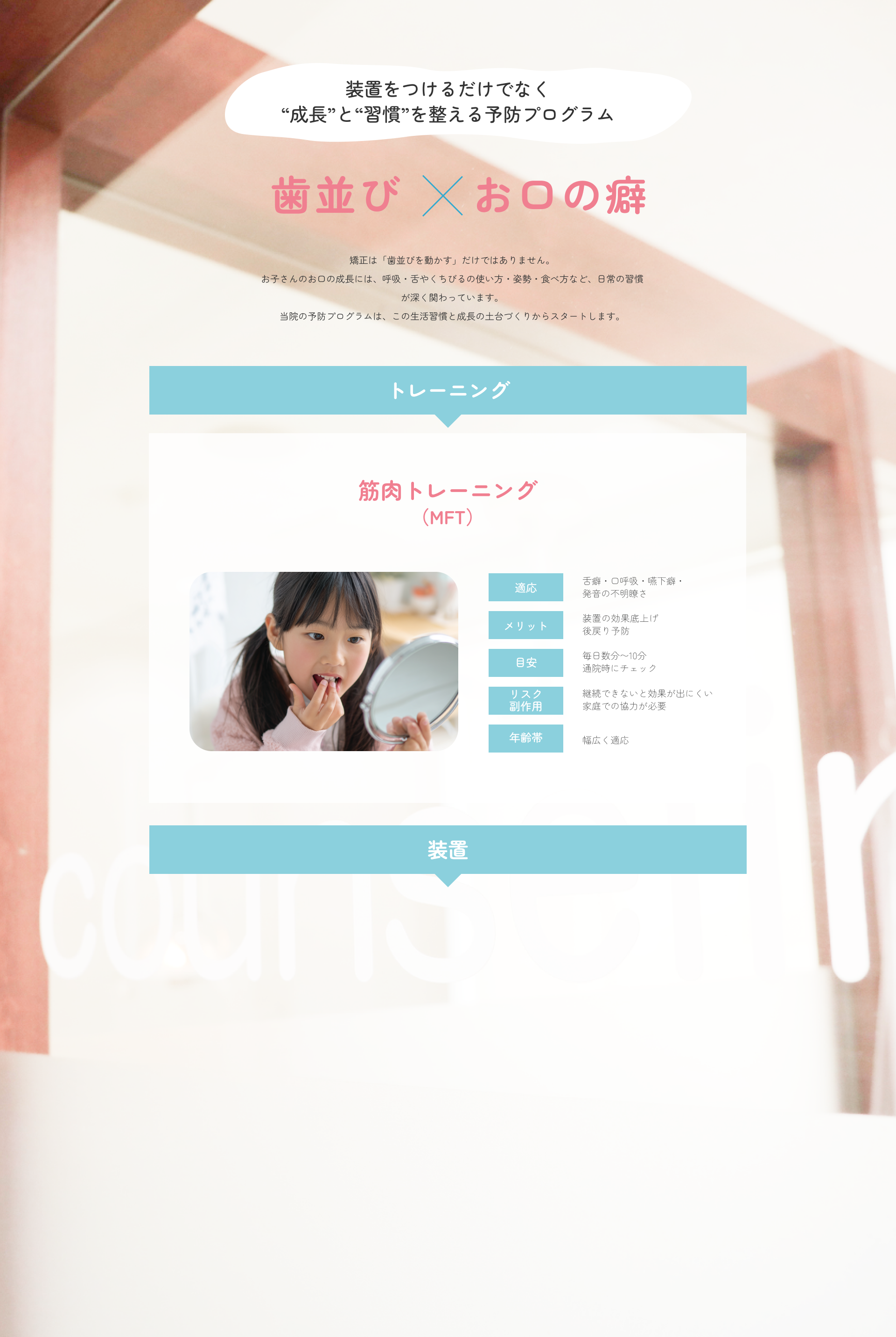 お口周りの筋機能(口腔周囲筋)を鍛える治療です。